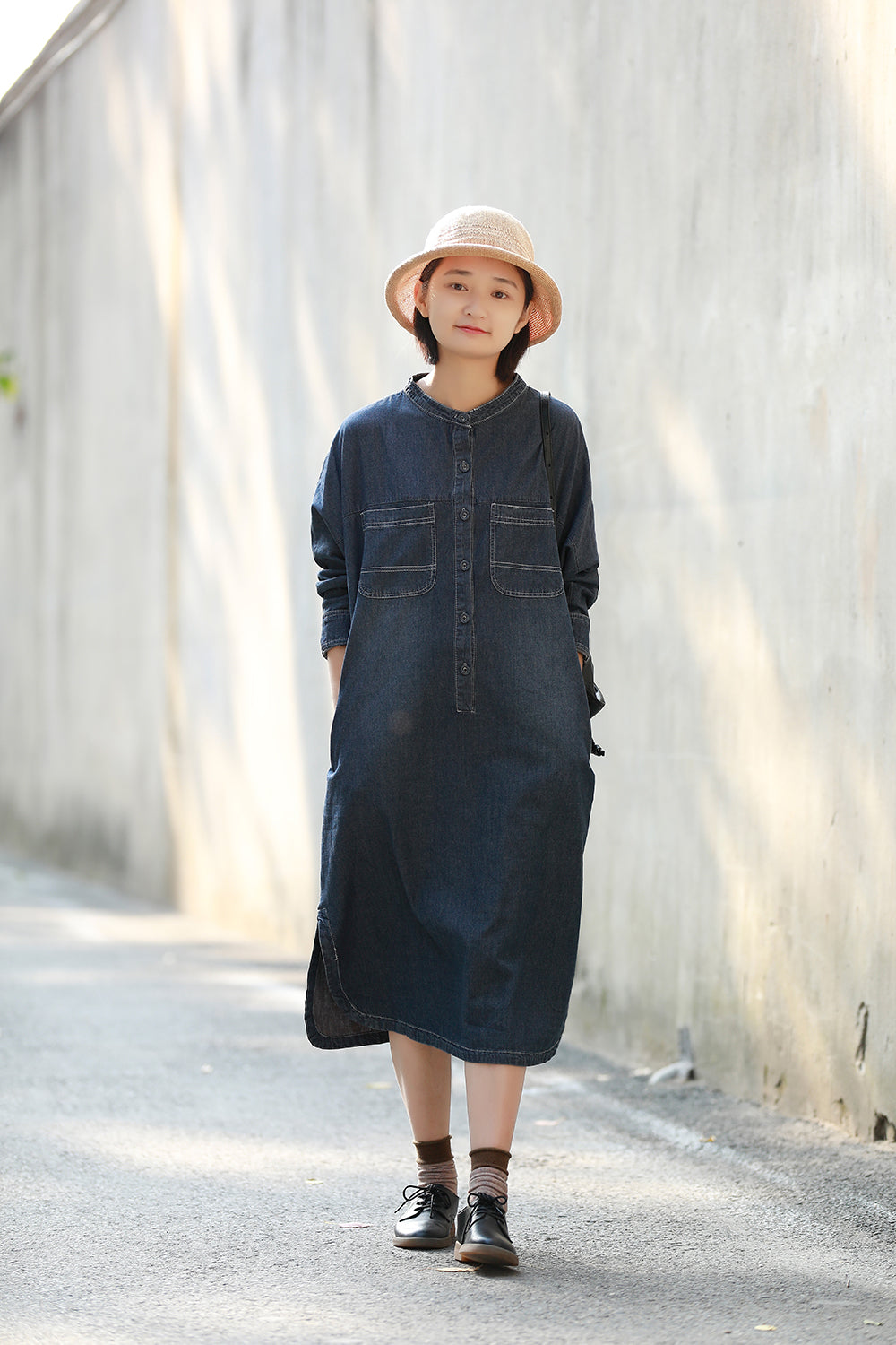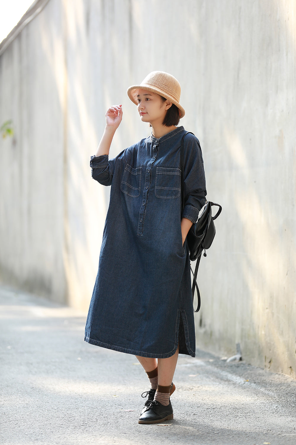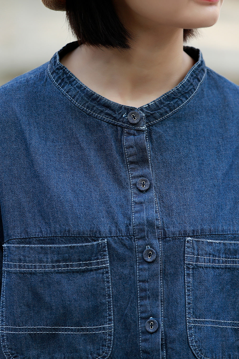 顏色:牛仔藍尺碼:均码面料:牛仔袖長:长袖糢特身高:160cm體重:45kg