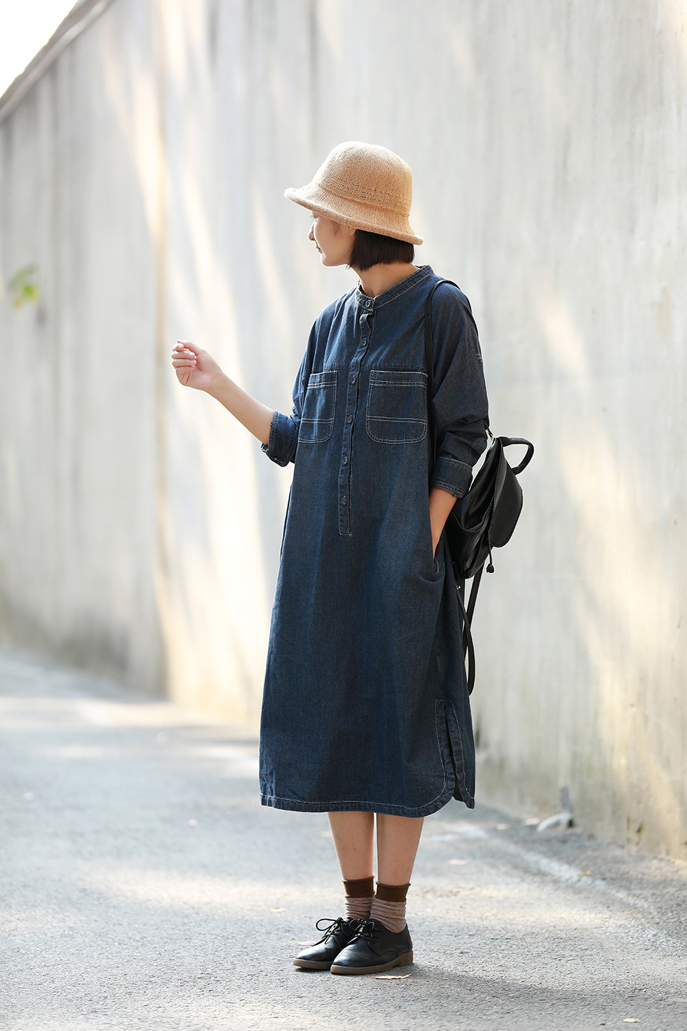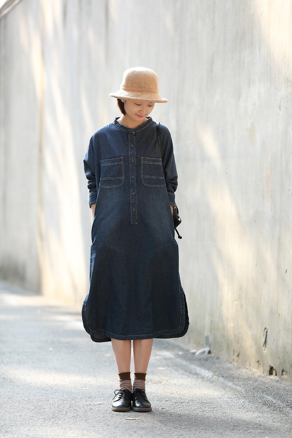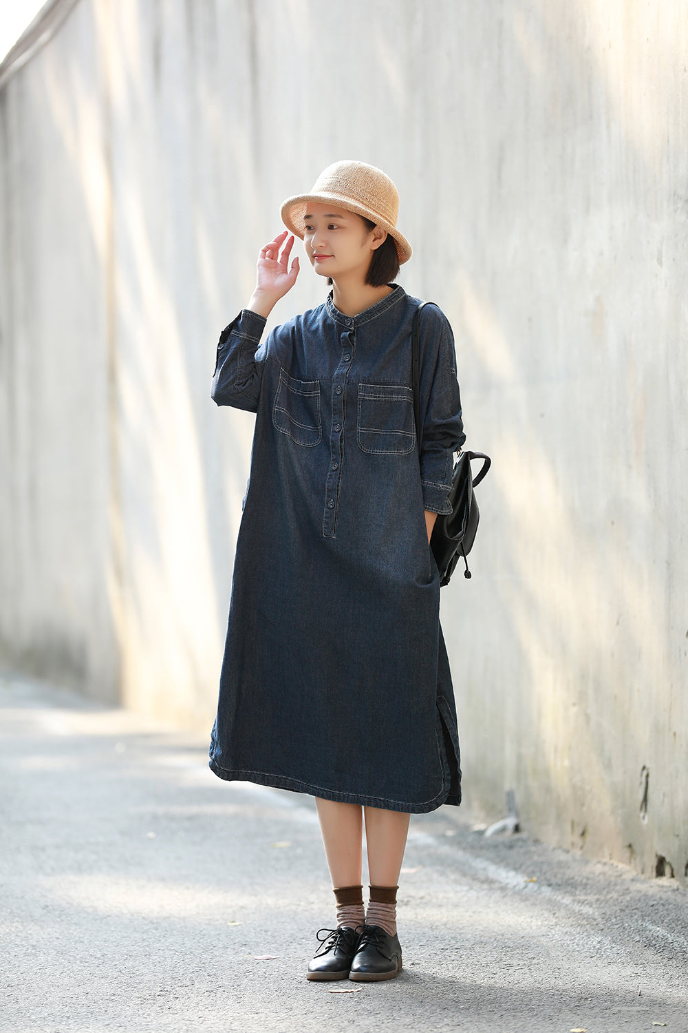 顏色:牛仔藍尺碼:均码面料:牛仔袖長:长袖糢特身高:160cm體重:45kg